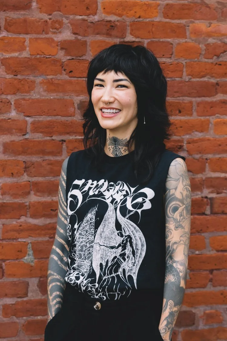 Tattooing since 2017, I specialize in bold ornamental tattoos while prioritizing client care and accessibility. My art is informed by my study of the religious history and material culture of Asia & the Pacific, as well as my personal qigong practice. I love a good research project & spending time with my dog Kiku.